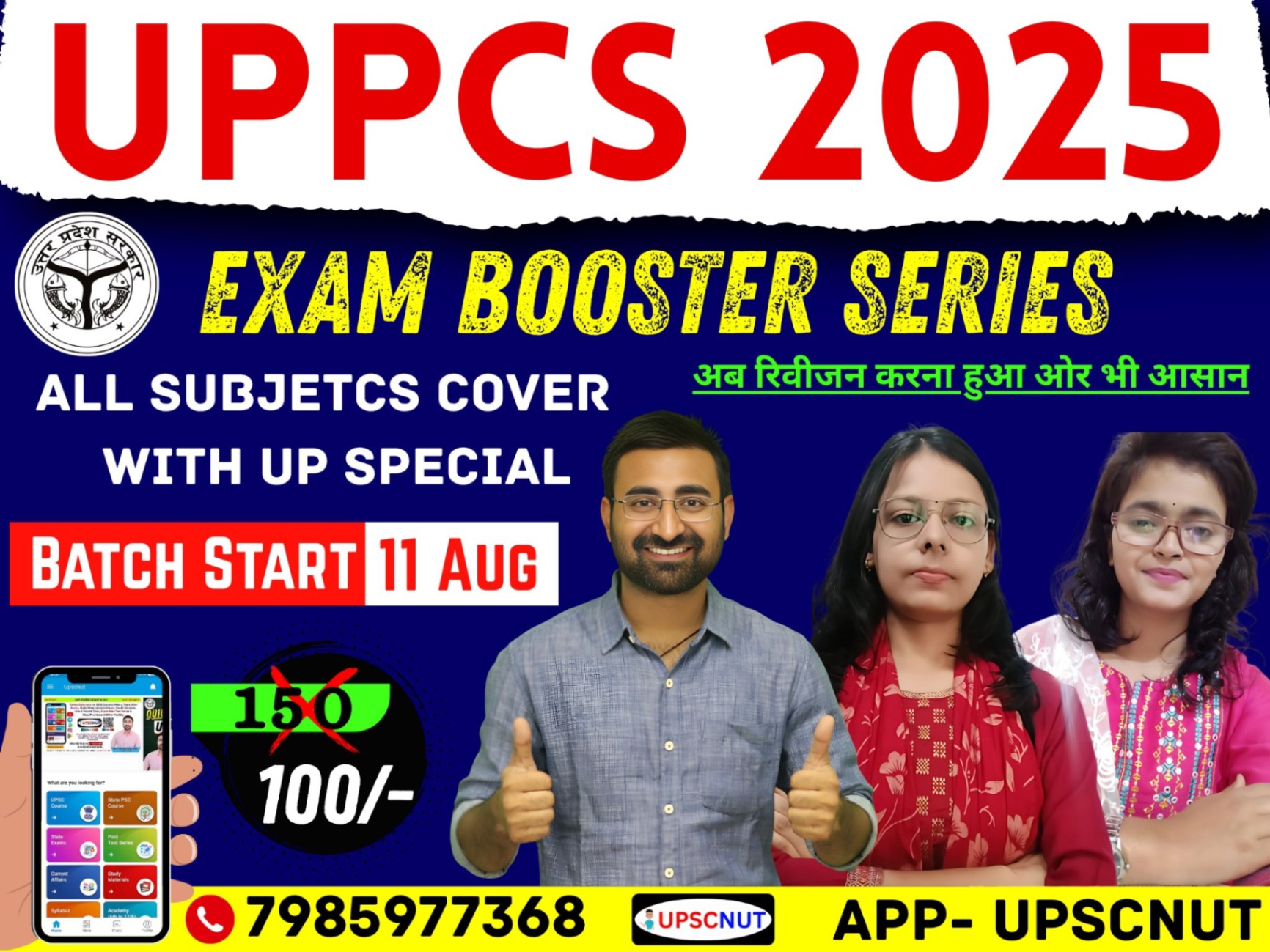 UPPCS Exam Booster Series 2025 SUBJECTS-: UP History Ancient, Medieval, Modern History UP Geography Indian, World Geography Environment Polity UP & Indian Economy Current Affairs Total- 90+ Lecture प्रत्येक दिन 3 Lecture Upload होगे, आप को Daily Lecture Complete कर लेना है जिससे आपका Course 1 माह में समाप्त हो जायेगा | उसके बाद आप पुनः अपने हिसाब से रिवीजन कर पायेगे | Points-: Live / Recorded Video Class 90+ Video Download Facility ~~~~~~~~~~~~~~~~~~~~~~~~~~~~~~~~~~~~~~ FEE - 150/- OFFER FEES - पहले आओ, पहले पाओ के तहत, Students के लिए केवल 100/- रूपये में ..... जल्दी करे किसी भी समस्या के लिए आप हमे संपर्क करे - 7985977368 NOTE-: Payment करते ही सभी VIDEOs UNLOCK हो जाएगी | तो देर किस बात की JOIN NOW YouTube Channel Name- 1- UPSC NUT 2- PCS BY TARUN